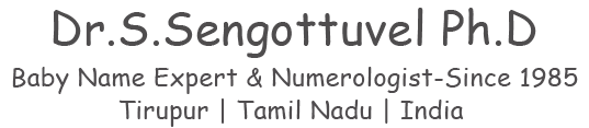 Dr.Sengottuvel Ph.D | Tirupur | Tamil Nadu | India is the best Baby name Expert in the world. He has 30 years of experiences in baby name selection field, and he named more than 1 million babies. All the babies are grown well and now they are very successful. Dr.Sengottuvel has the divine power so his name are not only names it is a powerfull manthra , it makes the ordinay man in to extraordinary man.